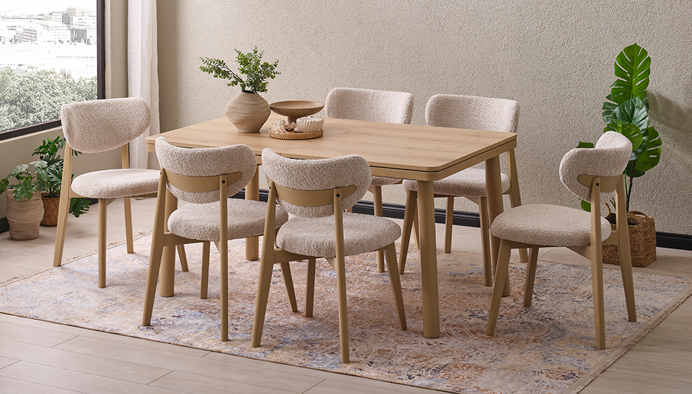 1 Adet Ortadan Açılır Masa - 6 Adet Arya Sandalye