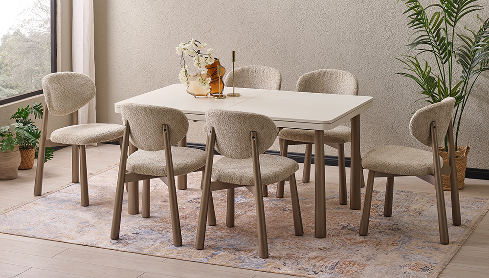 1 Adet Ortadan Açılır Masa - 6 Adet Mantar Sandalye