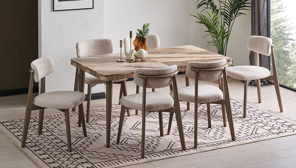 1 Adet Ortadan Açılır Masa - 6 Adet Otto Sandalye