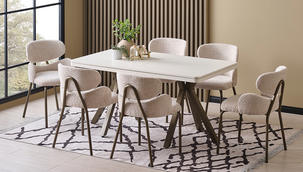 1 Adet Ortadan Açılır Masa - 6 Adet Zambak Sandalye