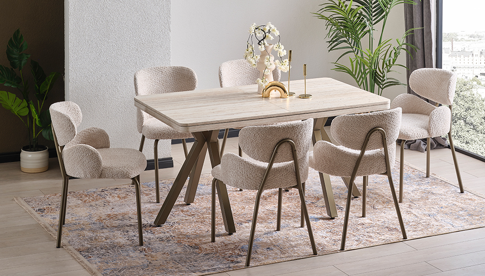 1 Adet Ortadan Açılır Masa - 6 Adet Zambak Sandalye