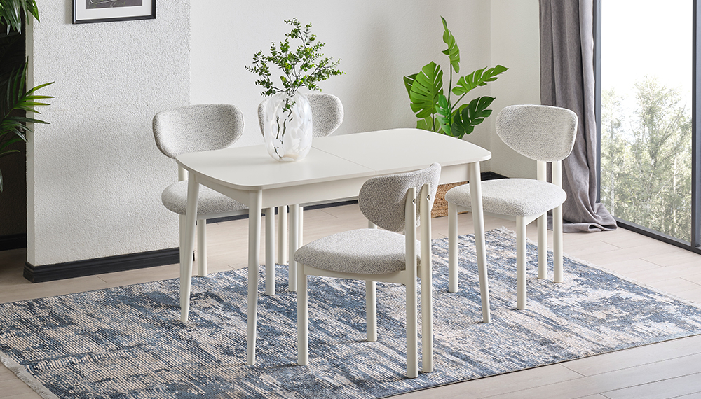 1 Adet Ortadan Açılır Masa - 4 Adet Bohem Sandalye