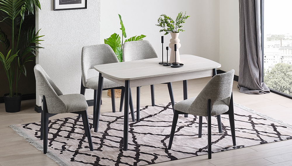 1 Adet Ortadan Açılır Masa - 4 Adet Asil Sandalye