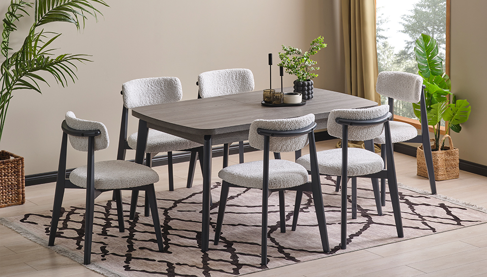 1 Adet Ortadan Açılır Masa - 6 Adet Otto Sandalye