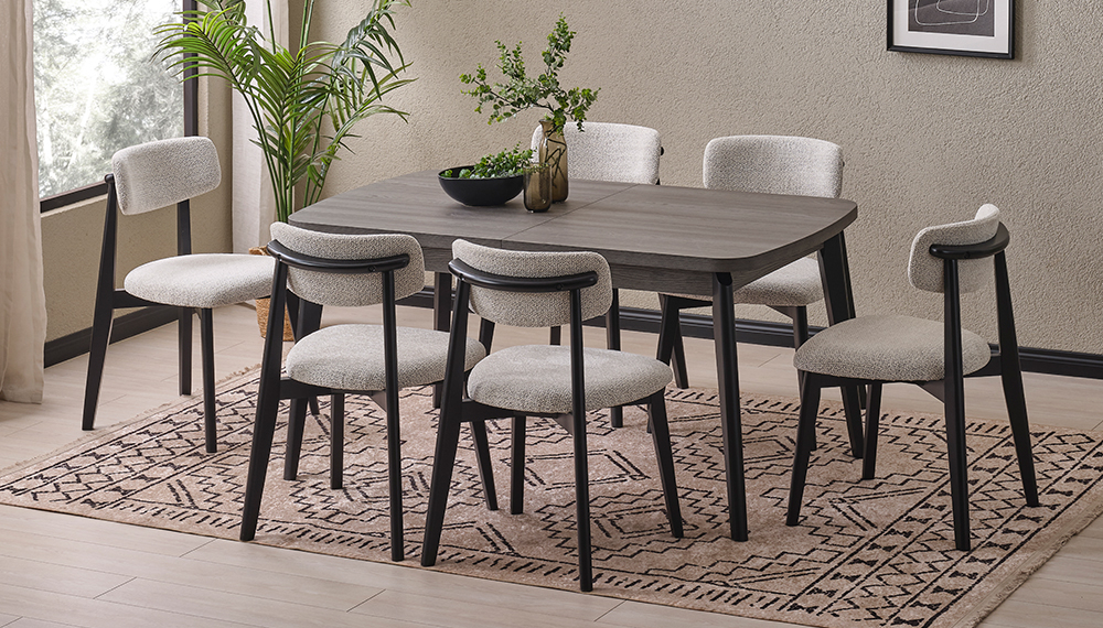 1 Adet Ortadan Açılır Masa - 6 Adet Otto Sandalye