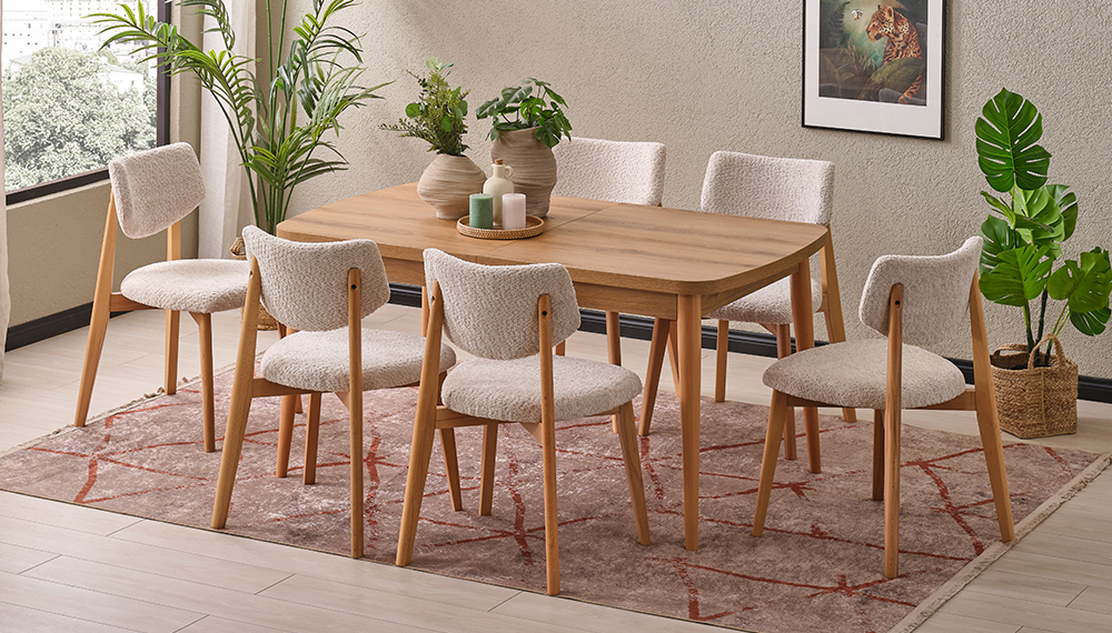 1 Adet Ortadan Açılır Masa - 6 Adet Rosa Sandalye