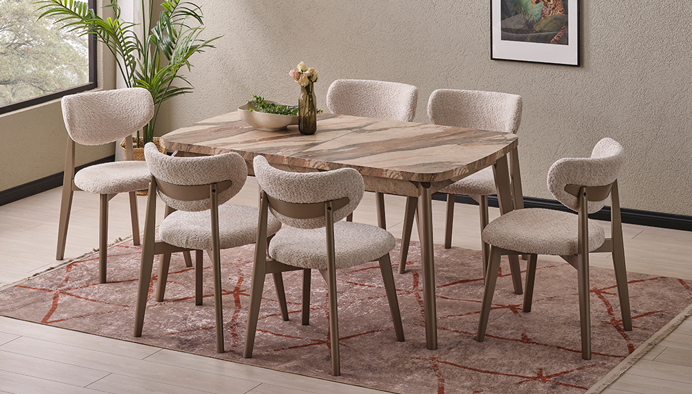 1 Adet Ortadan Açılır Masa - 6 Adet Arya Sandalye