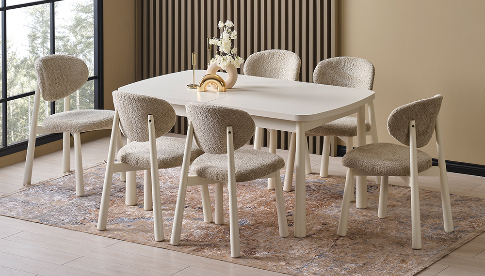 1 Adet Ortadan Açılır Masa - 6 Adet Mantar Sandalye