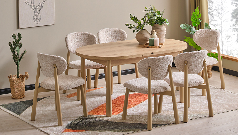 1 Adet Oval Kelebek Masa - 6 Adet Mantar Sandalye