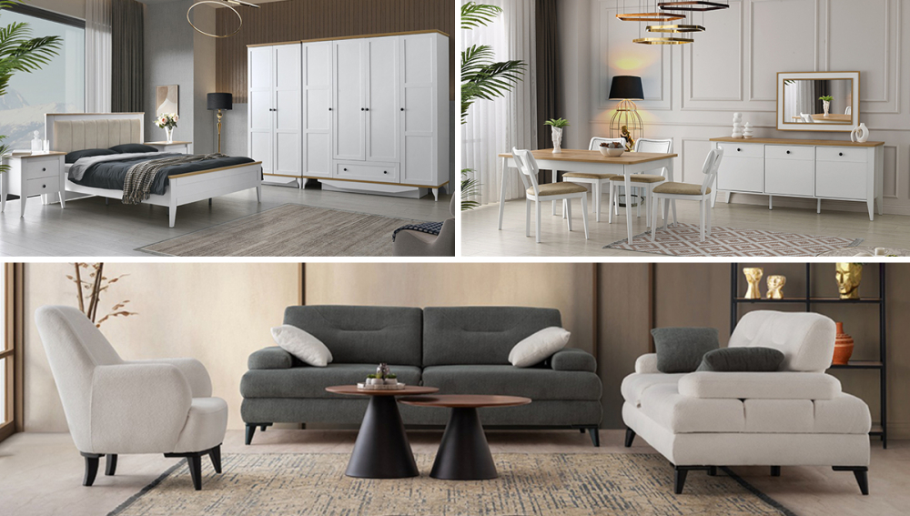 Polka Yatak Odası Takımı -Dolap -Şifonyer+Ayna -2 Ad Komodin -Bazalı Karyola(160x200) Polka Yemek Odası Takımı -Masa -Konsol+Ayna -6 Sandalye Amara Koltuk Takımı 3-3-1 |