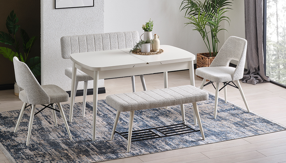1 Adet 75*130 Kelebek Masa 1 Adet 100'lük Kanepe 1 Adet 100'lük Bench 2 Adet Kafesli Efe Sandalye |
