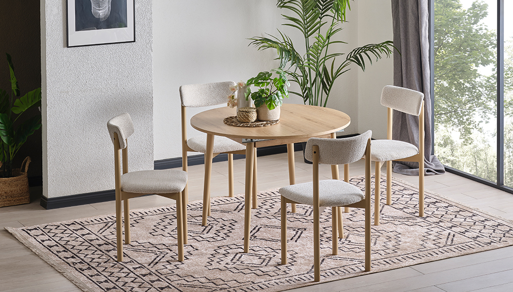 1 Adet Yuvarlak Ortadan Açılır Masa - 4 Adet Era Sandalye