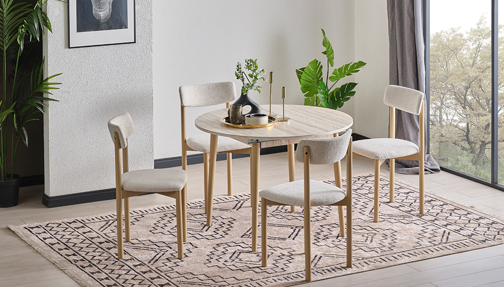 1 Adet Yuvarlak Ortadan Açılır Masa - 4 Adet Era Sandalye