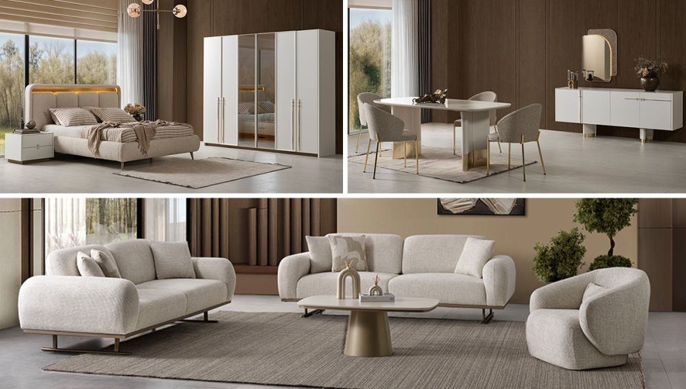 Zenit Yatak Odası Takımı -Dolap -Şifonyer+Ayna -2 Ad Komodin -Karyola(160x200) Zenit Yemek Odası Takımı -Masa -Konsol+Ayna -6 Sandalye Cozy Koltuk Takımı 3-3-1 |
